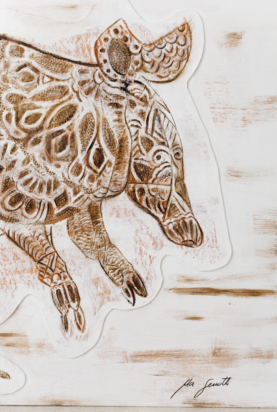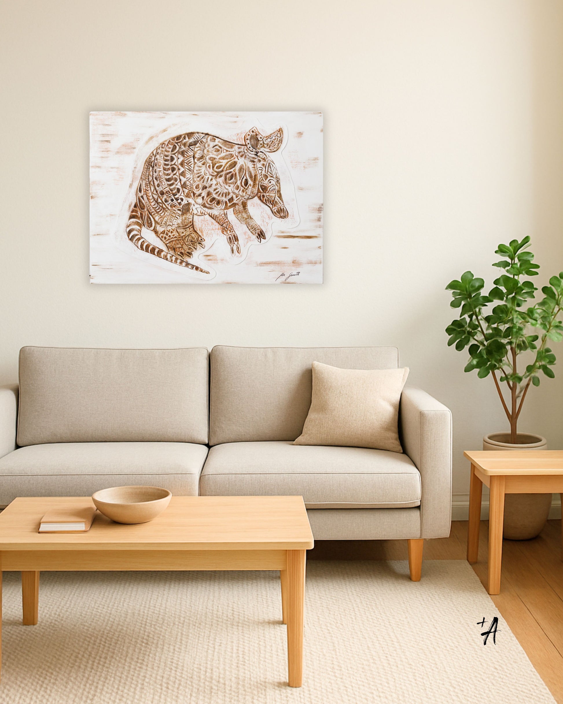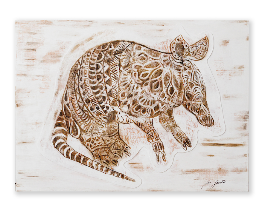 Descripción su nombre en guaraní es tatu carreta, Se lo denomina como "ingeniero" del bosque, ya que modifica positivamente su entorno por medio de sus madrigueras, representa sabiduría, son un símbolo mítico y sagrado.