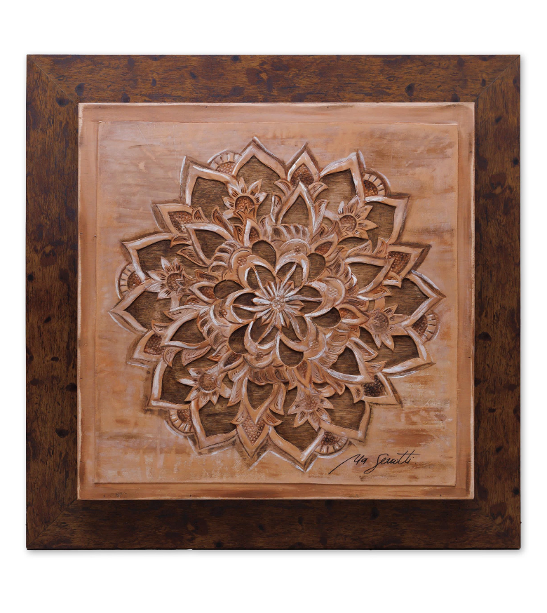 Xilopintura sobre doble cuero y madera con aplicación de calados